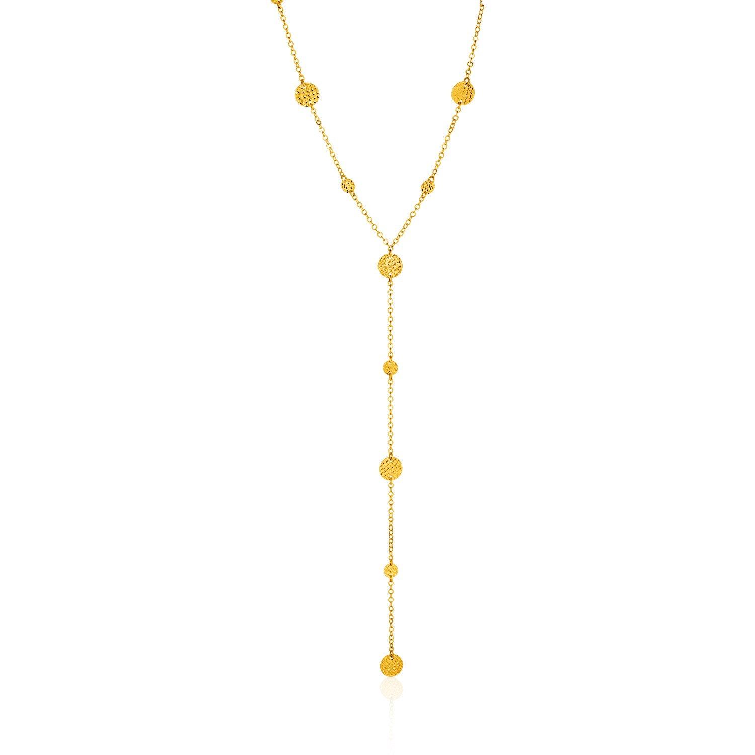 14k Yellow Gold Lariat Necklace with Textured Flat Circles